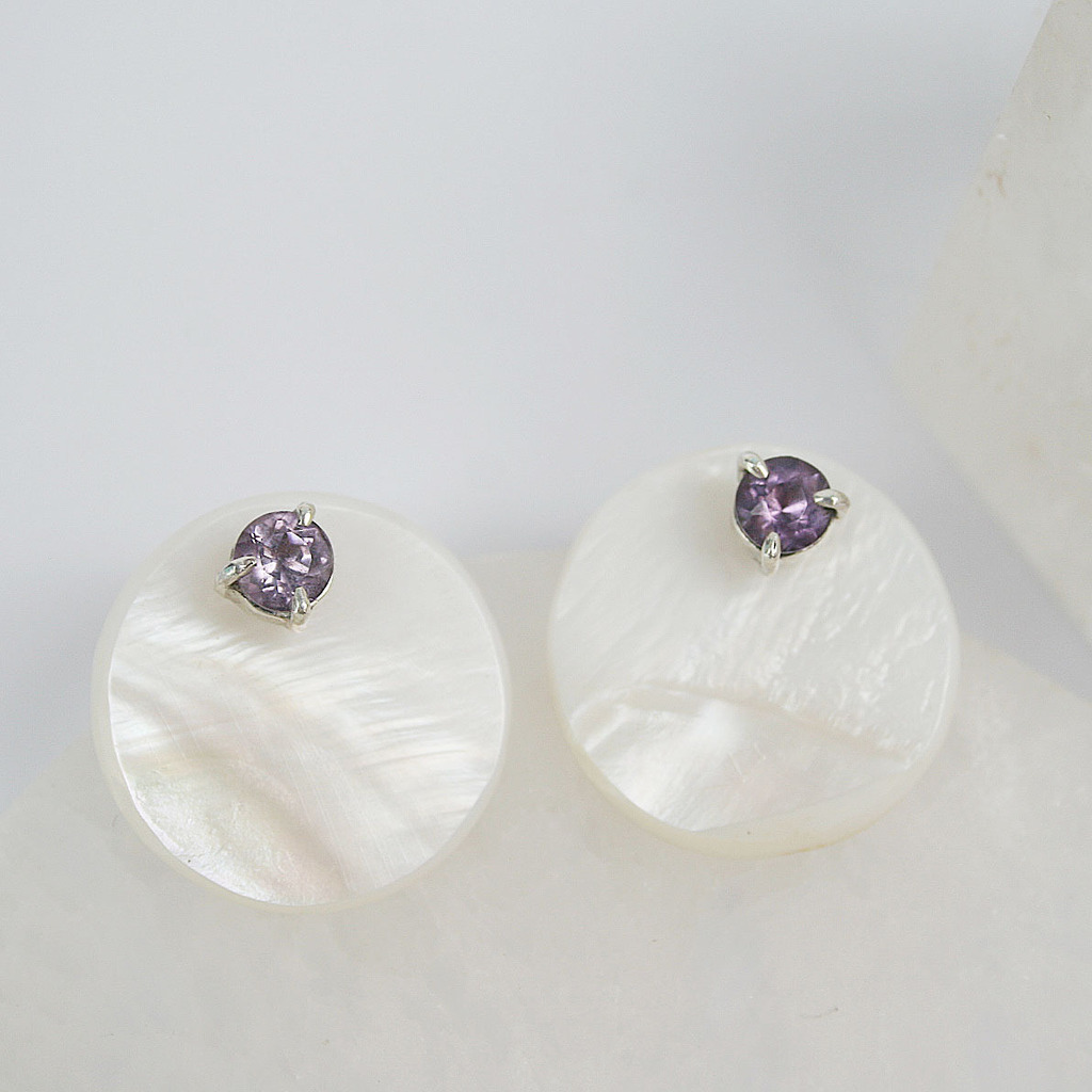 Brinco versátil, estilo 2 em 1, pode ser usado apenas a parte da pedra Ametista, ou para um maior destaque a madrepérola lapidada em formato de disco. Para te acompanhar em muitas ocasiões!