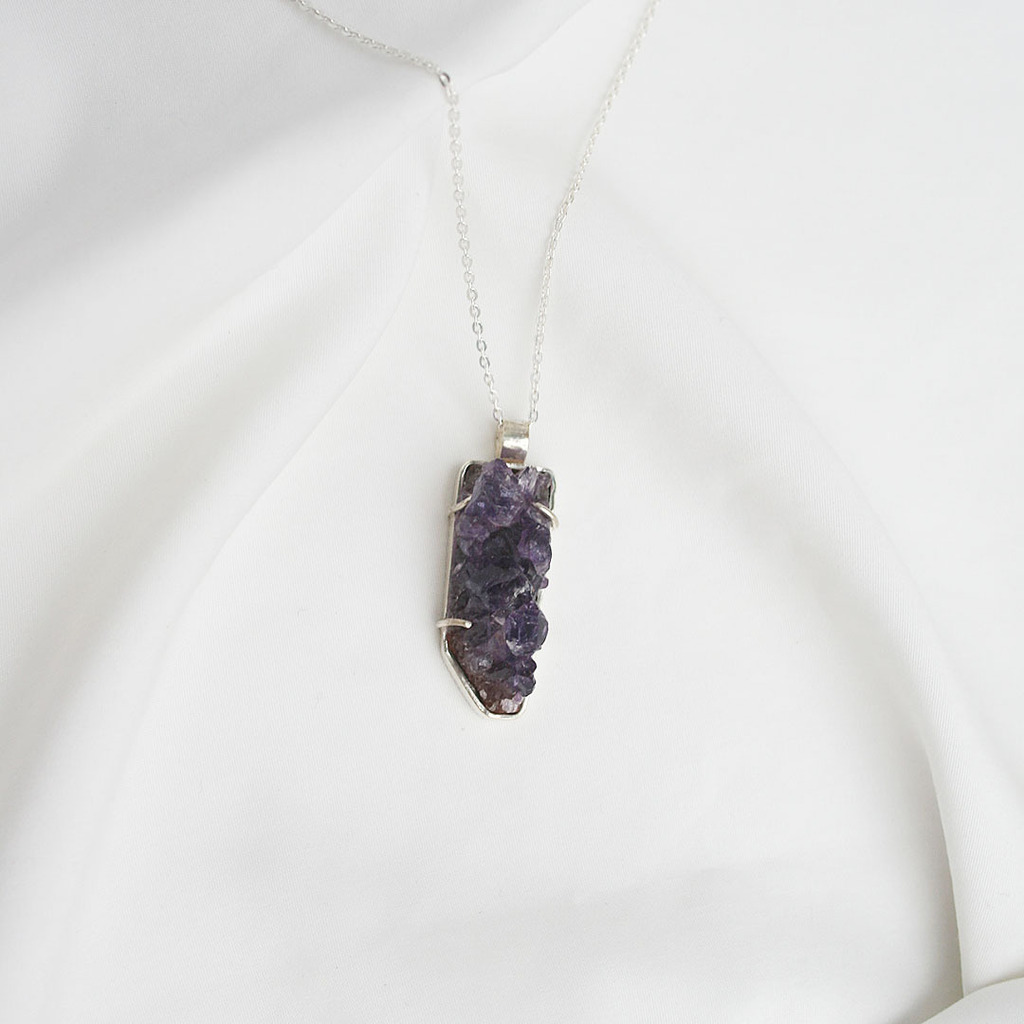 Colar que ressalta a a beleza da Drusa de Ametista em seu estado bruto e natural. Combina o rústico e o delicado!